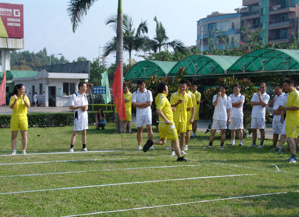 国研机械全体员工在公司举办的运动会上参加接力比赛
