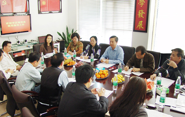 12月6日上午,广州市非公经济组织创先争优活动指导小组一行在天河区经贸局、外贸局和旅游局局长李笑娟、珠吉街党工委书记杜党勇、办事处主任周国栋、副书记陈文荡等区、街领导的陪同下,来到广州市国研机械设备制造有限公司开展创先争优调研工作。